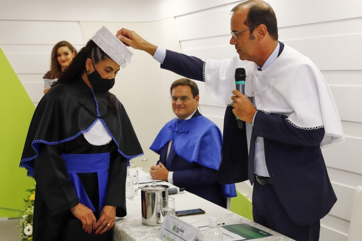 A solenidade graduou 47 estudantes de polos de ensino a distância (EaD) localizados em Cuiabá (MT), Fortaleza (CE), Ubajara (CE), Gandu (BA), João Pessoa (PB), Palmas (TO), Rio Bananal (ES), Santa Izabel do Pará (PA) e Brasília (DF). Os formandos, professores e convidados participaram de forma remota da cerimônia realizada na sede da Faculdade CNA, em Brasília.
