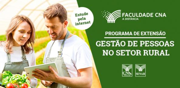 Brasília, (26/09/2016) – Com o crescimento acelerado do setor agropecuário e a adoção das novas tecnologias no campo, as empresas rurais exigem, cada vez mais, procedimentos diferenciados e pessoas qualificadas para o trabalho na área. A gestão de pessoas no setor rural é hoje um dos grandes desafios para os produtores e, por isso, a Faculdade de Tecnologia CNA (Confederação da Agricultura e Pecuária do Brasil) está oferecendo um programa completo de cursos a distância com foco no tema.