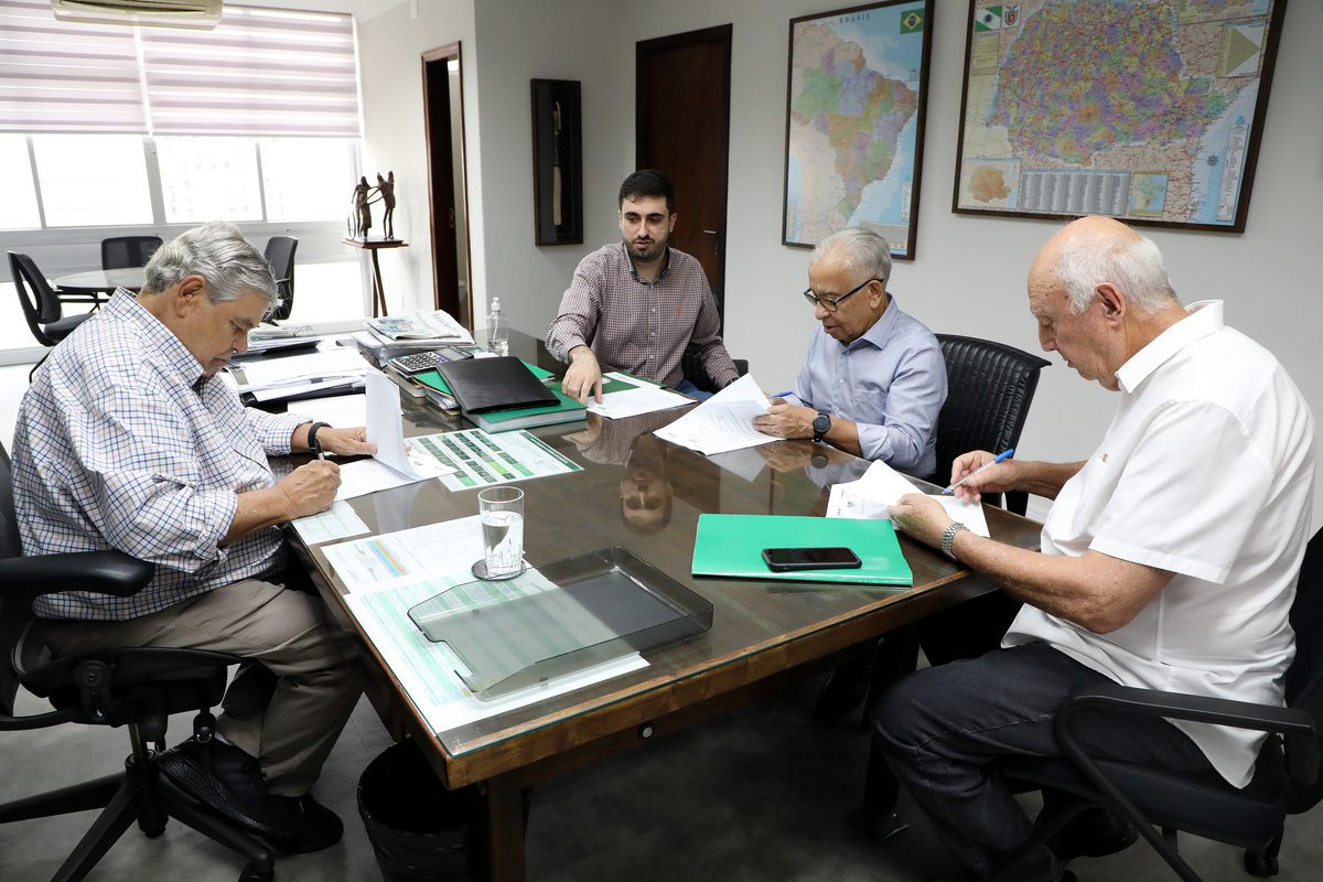 Ronei Volpi, presidente da CT de Bovinocultura da FAEP, Meneguette, Martins e o vice-presidente da FAEP, Ágide Eduardo Meneguette, participaram da assinatura do convênio