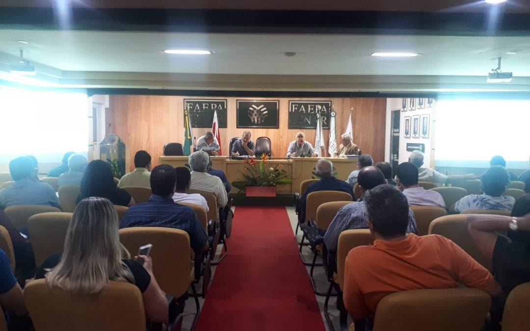 O presidente da Faepa, Carlos Xavier, conduziu a abertura da reunião e em seguida formou a mesa com os seguintes convidados: Clóvis Carneiro, presidente da Associação Comercial do Pará (ACP), Jaime da Silva Barbosa, prefeito de Cachoeira do Arari, na ilha do Marajó, e Fabrício de Paula, assessor técnico do Sistema Faepa.