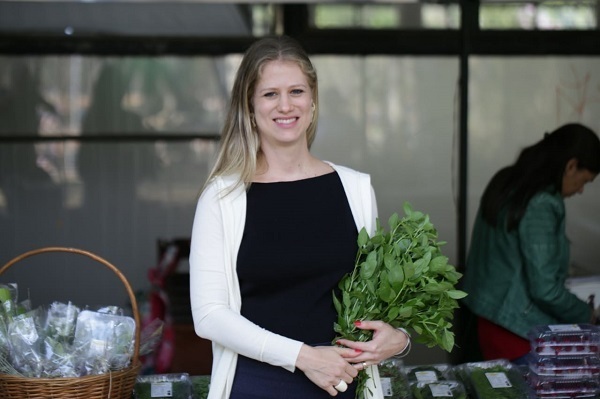 A produtora Deborah Gaiotto, da Fazenda Maria, trouxe suas ervas aromáticas e flores comestíveis para a feira ao lado da chef Daniela Diniz, da D’Macarons. Ela, que já se capacitou pelo Senar em vários cursos voltados para a olericultura, conta que o evento é importante para o público conhecer o trabalho do produtor rural.