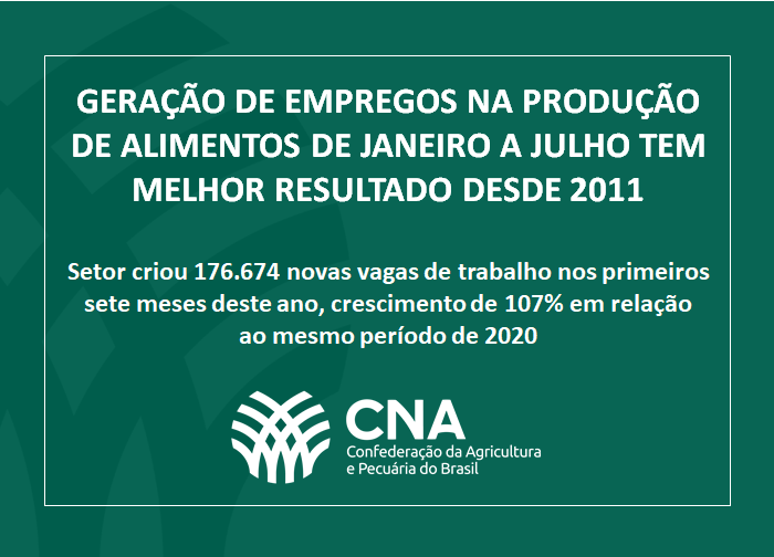“Isso significa que contabilizados ambos períodos – saldos acumulados de jan-jul/2020 e de jan-jul/2021 –, a Agropecuária é o setor que apresenta maior contribuição para o emprego formal no País”, acrescenta o comunicado técnico da CNA.