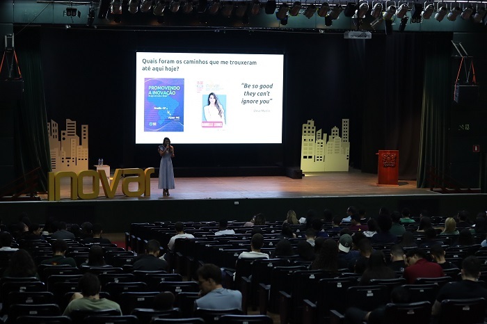 A coordenadora do HUB CNA, Danielle Leonel, fez a palestra magna de encerramento do seminário sobre empreendedorismo, inovação e desenvolvimento. O evento reuniu estudantes universitários, pesquisadores e empreendedores.