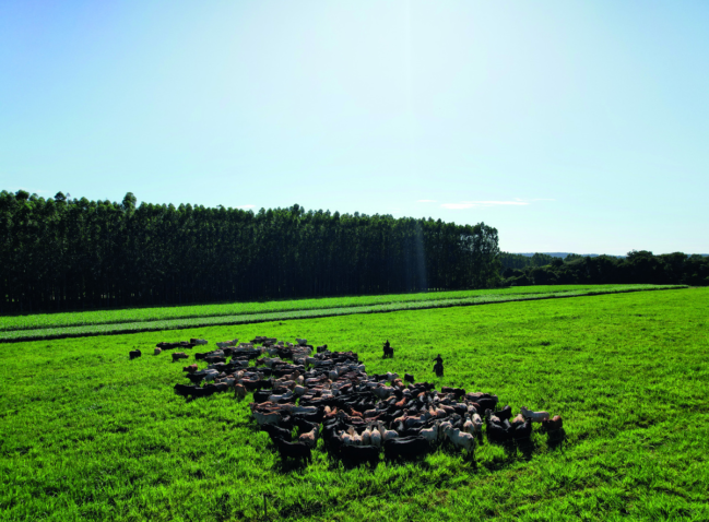 Apesar de ainda não ter sido colhida, essa floresta contribui com os resultados da fazenda ao capturar o carbono da atmosfera, neutralizando parte das emissões que ocorrem na atividade pecuária, sem contar a questão paisagística.