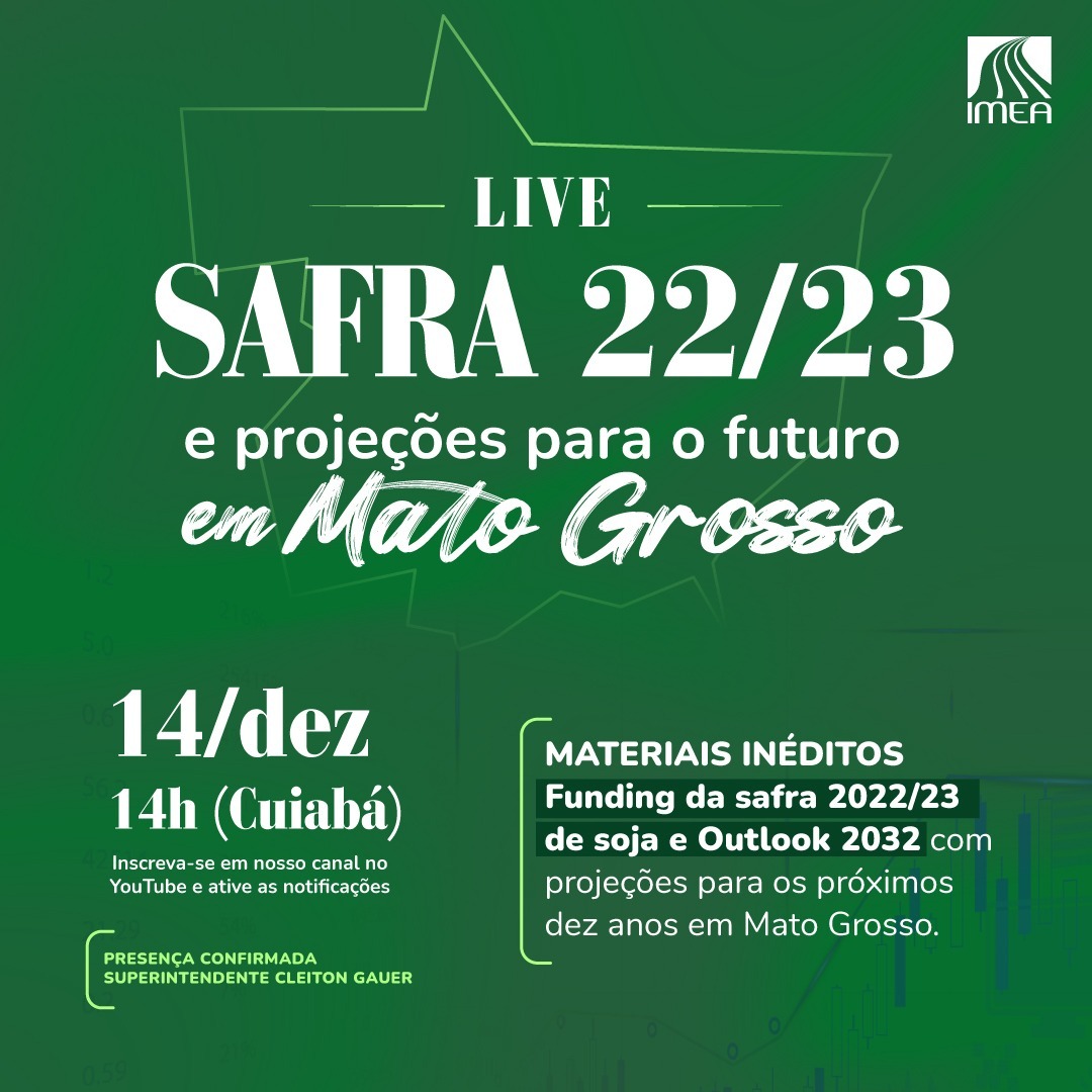 Além do Outlook, o Imea vai lançar o Funding da Soja – Safra 22/23, apresentar o balanço da agropecuária mato-grossense em 2022 e perspectivas para 2023.