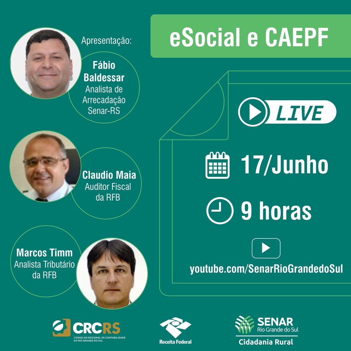 O programa será apresentado pelo analista de arrecadação do Senar-RS Fabio Ramon Baldessar, e contará com a participação do auditor fiscal da Receita Federal, Claudio Maia, e do analista tributário Marcos Timm. Eles vão esclarecer dúvidas sobre a entrega das informações ao eSocial e a inscrição no CAEPF, que segundo Baldessar, são ou estão envolvidos em obrigações recentes da vida do produtor rural.