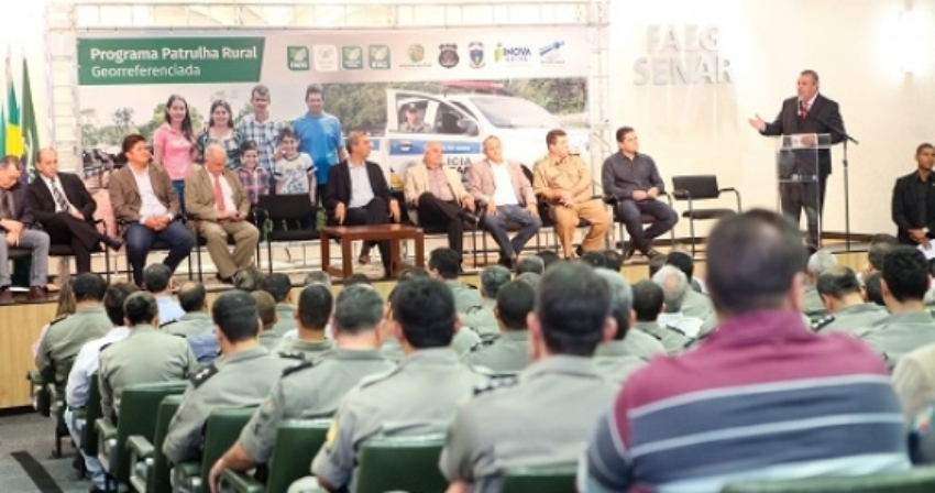 Em busca de garantir mais segurança às propriedades rurais do estado, a Federação da Agricultura e Pecuária de Goiás (FAEG) e o Serviço Nacional de Aprendizagem Rural (SENAR Goiás), em conjunto com os Sindicatos Rurais (SRs) e a Secretaria de Segurança Pública e Administração Penitenciária (SSPAP), lançaram na sexta-feira (27), no auditório da FAEG, o modelo do programa de Patrulha Rural Georreferenciada. A proposta é que a Polícia Militar com auxílio da tecnologia busque medidas no combate aos crimes praticados nas propriedades rurais, a exemplo de furtos e roubos. A solenidade contou com a presença de autoridades, representantes das polícias militar e civil, além de representantes do setor agropecuário.