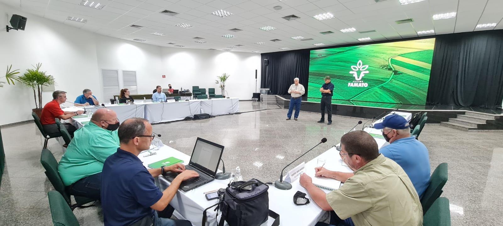 A delegação norte-americana composta pelos produtores rurais, Robert Ewoldt, presidente do Isa, e os diretores Timothy James Bardole, Kirk Alan Leeds (executivo), Aaron Putze (marketing), Warren Le Roy Bachman e Brent Swart (diretor industrial) foi recepcionada pelo presidente do Sistema Famato, Normando Corral.