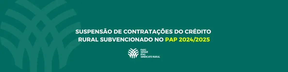 A Federação da Agricultura e Pecuária de Goiás (Faeg) manifesta grande preocupação com a decisão da Secretaria do Tesouro Nacional de suspender, a partir de 21 de fevereiro de 2025, as novas contratações de crédito rural subvencionado no âmbito do Plano Agrícola e Pecuário 2024/2025. A única exceção à suspensão é o custeio do Programa Nacional de Fortalecimento da Agricultura Familiar (Pronaf).