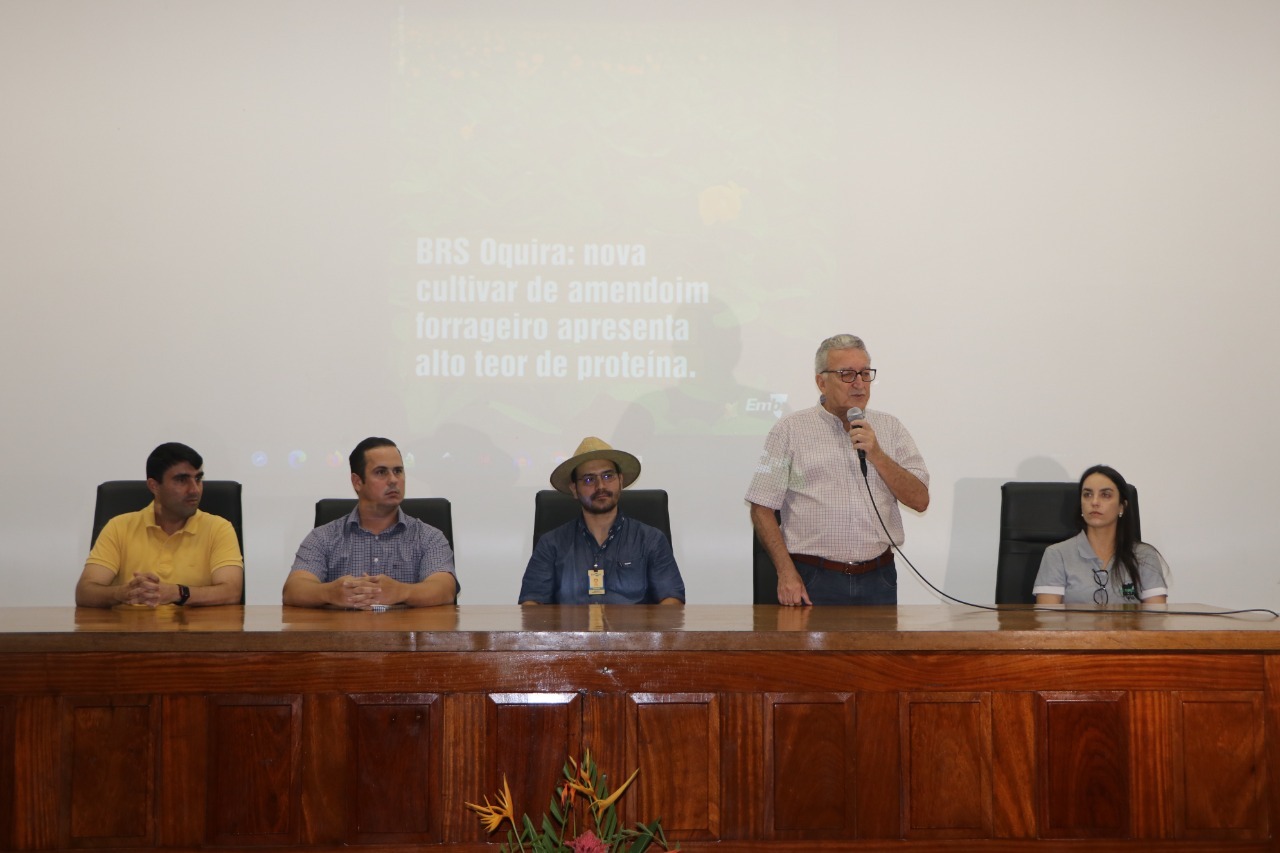 Resultado de 15 anos de pesquisa, a BRS Oquira - a nova cultivar de amendoim forrageiro - é uma opção alimentar para bovinos, equinos e ovinos. O lançamento foi realizado no último dia 8 deste mês, durante dia de campo na área experimental da Embrapa Acre, com participação dos pesquisadores da instituição e do presidente da FAEAC, Assuero Doca Veronez.