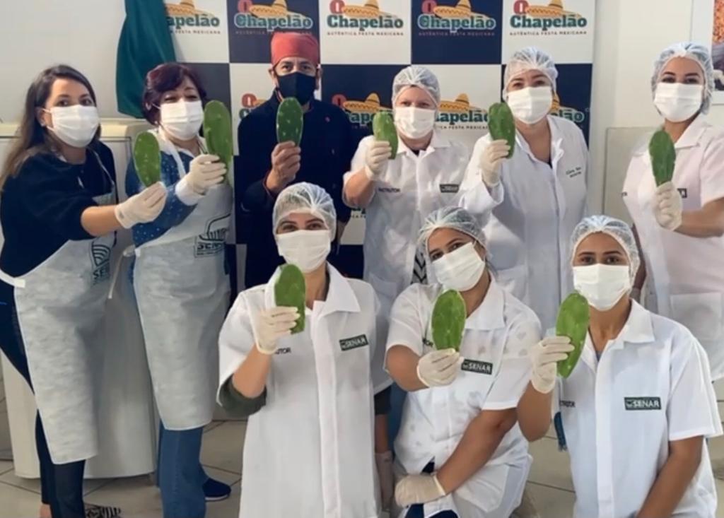 Seis instrutoras da área de alimentação e nutrição do SENAR MINAS estão aprendendo a execução dos pratos e preparando o plano instrucional. Elas são Eliene Mota, Fernanda Lupki, Silvana Zanuncio, Camila Tatielly, Keila Danielly e Mara Juscilene. A iniciativa do curso foi tão bem-vinda que, na abertura do treinamento, a cônsul adjunta do México, Ana Luisa Vallejo Barba, deixou uma mensagem aos participantes, agradecendo por ajudar a difundir a cultura da palma.