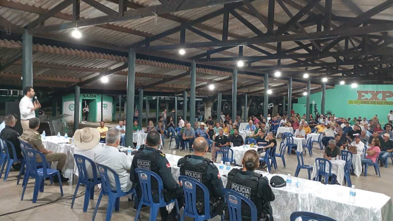 Estiveram presentes no evento, compondo a mesa de trabalhos, o Comandante do 13º Batalhão da Polícia Militar, Tenente Coronel Flávio Antônio Pires Maciel; Comandante da Unidade do Corpo de Bombeiros, o Tenente Coronel BM Luiz Roam; o Delegado Michael, da Delegacia Especializada em Conflitos Agrários (DECA) de Altamira; o Delegado Hélio, representando o Superintendente Regional da Polícia Civil; o Sr. Mário Solano, Assessor da Federação da Agricultura e Pecuária do Pará (Faepa); e, como palestrante, o Dr. Vinícius Borba, advogado e produtor rural, que expôs o tema: ‘Orientações sobre a regularização fundiária e procedimentos legais para os casos de turbação, esbulho possessório, interdito proibitório e reintegração de posse’.
