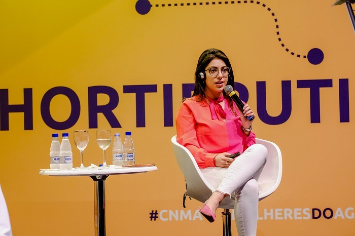 Na arena de conhecimento sobre hortifruti, Camila falou um pouco da sua vida como influenciadora digital do agro e do empreendimento da família, a Hortaria, que surgiu após ela ter participado do CNA Jovem.