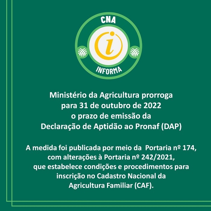 O presidente da Faesc, José Zeferino Pedrozo, observa que a DAP deixará de ser emitida e será substituída pelo CAF com o objetivo de acessar às ações e políticas públicas destinadas às Unidades Familiares de Produção Agrária (UFPA) e aos empreendimentos familiares rurais. “Recomendamos que as DAPs que tiveram o prazo prorrogado também sejam migradas para o CAF o quanto antes para evitar problemas futuros aos produtores rurais”, enfatiza.