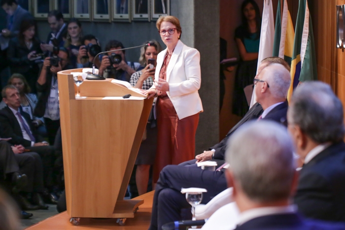 Ministra Tereza Cristina destacou que o projeto marca a harmonia e parceria entre meio ambiente e agricultura.
