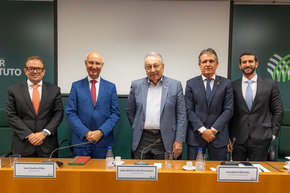 Brasília (20/02/2025) – O presidente da Confederação da Agricultura e Pecuária do Brasil, João Martins, e o ministro do Tribunal Superior do Trabalho (TST), Ives Gandra Martins Filho, participaram, na quinta (20), da primeira reunião do ano da Comissão Nacional de Relações do Trabalho e Previdência Social (CNRTPS) da CNA.