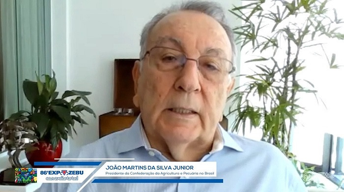 Brasília (01/05/2021) – O presidente da Confederação da Agricultura e Pecuária do Brasil (CNA), João Martins, participou do lançamento da 86ª ExpoZebu, no sábado (01). A exposição, promovida pela Associação Brasileira dos Criadores de Zebu (ABCZ) e considerada uma das maiores feiras de pecuária zebuína do mundo, acontece de forma virtual até o dia 9 de maio, com transmissão da ABCZ TV.