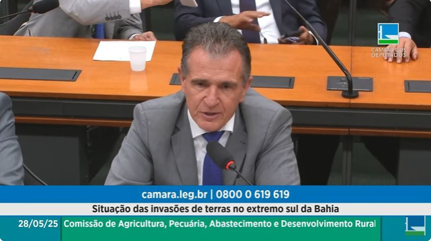 Presidente da Faeb, Humberto Miranda, fala em audiência pública, em Brasília, sobre invasões de terra no Extremo Sul baiano