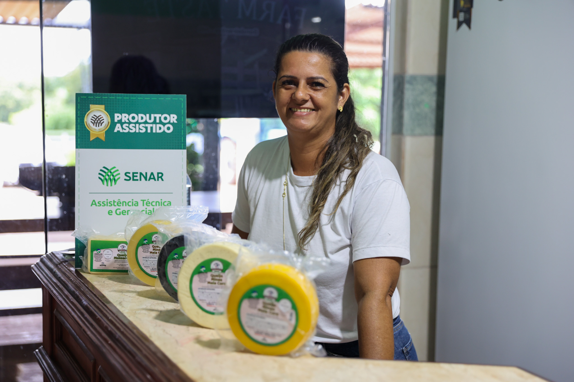 ATeG Agroindústria – Sandra Medeiros, da Queijaria Farm Taste, é atendida pela Assistência Técnica e Gerencial (ATeG) Agroindústria do Senar/MS. A cadeia constitui uma importante alternativa na geração de emprego, sucessão familiar e renda no meio rural. Os técnicos acompanham os empreendedores ao longo do processo, desde a produção até a comercialização.