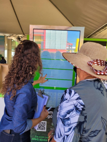 “Aqui na feira, contamos com um totem interativo, direcionado a landing page (site) da ATeG, no qual podemos apresentar aos produtores a metodologia ATeG, quais são as cadeias atendidas, vídeos com relatos de produtores que já fazem parte, e também realizar as inscrições. Esses dados do produtor serão encaminhados para o Sindicato Rural de sua cidade ou região. Assim que 25 a 30 propriedades sinalizam o interesse em receber a assistência, o sindicato entra em contato com o Senar-RS, que viabiliza um técnico de campo vinculado a uma empresa credenciada para fazer o atendimento a essas propriedades", explica Gabriela Chaves, integrante do corpo técnico da ATeG, acrescentando que, hoje, há 183 grupos do programa em atividade no Estado.