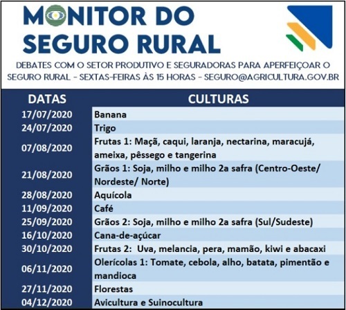 Confira o calendário de reuniões do Projeto Monitor do Seguro Rural: