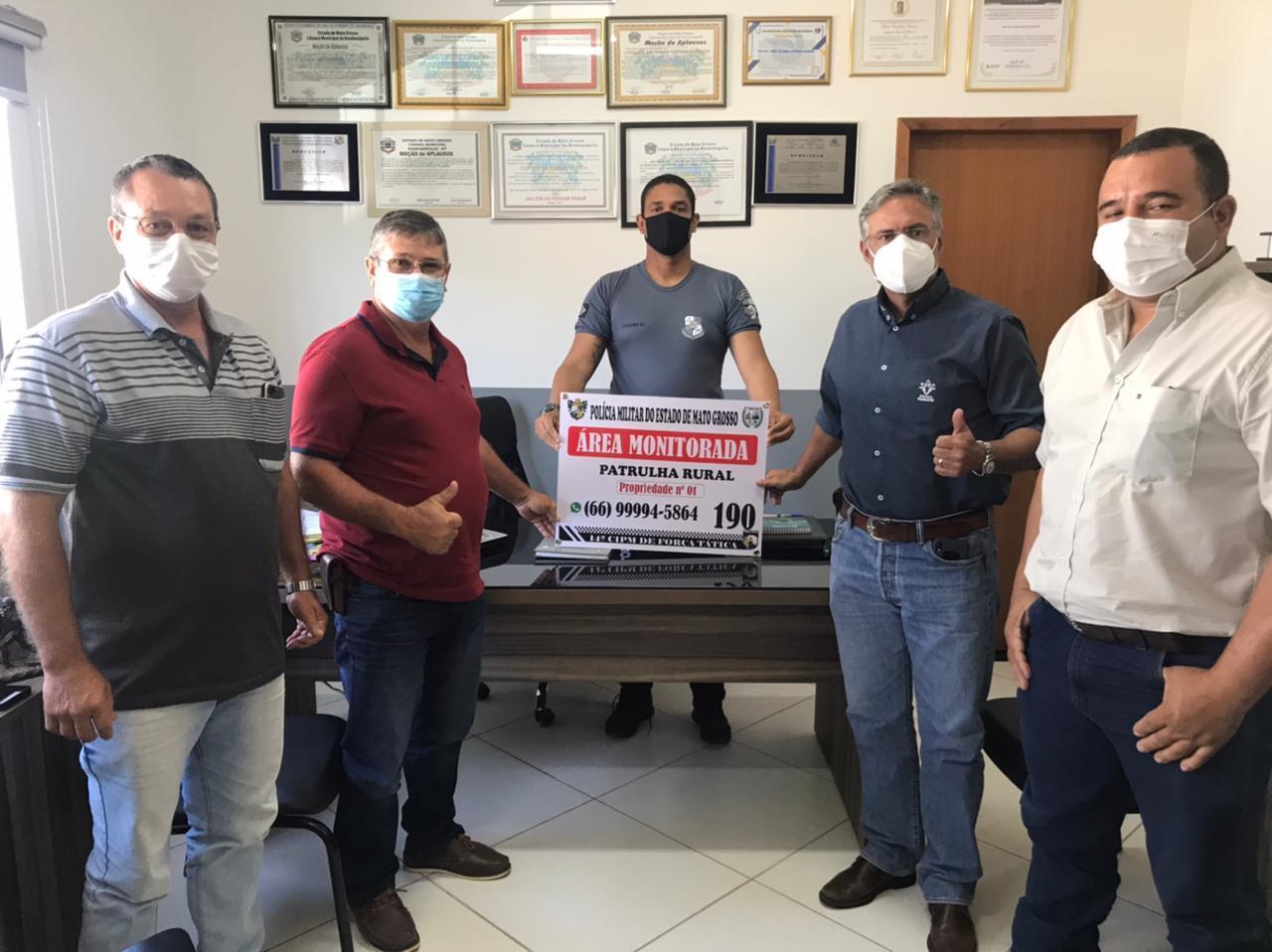 Alberto Luiz Chiapinotto, presidente do Sindicato Rural de Jaciara, o vice-presidente Rafael Oliveira Santos e o diretor Luiz Breda reuniram-se com o tenente-coronel Gleber Candido Moreno, comandante do 14º Comando Independente da Polícia Militar de Força Tática, para conhecerem os resultados deste trabalho.