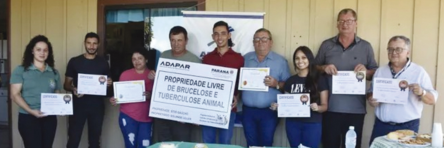 A certificação faz parte do Programa Estadual de Controle e Erradicação da Brucelose e da Tuberculose Animal (PNCEBT). Segundo a Secretaria de Estado da Agricultura e do Abastecimento (Seab), até hoje, a Adapar já concedeu o selo de livre dessas doenças a 109 propriedades rurais do Paraná.
