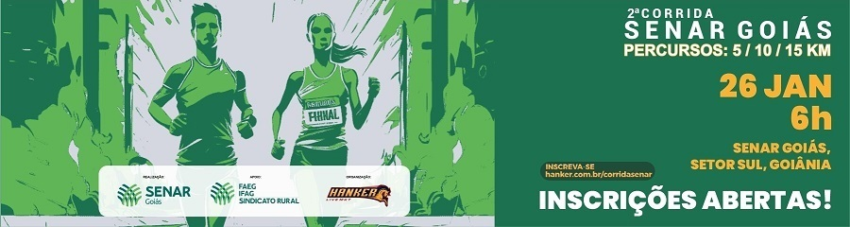 Já a corrida Senar, que acontece pelo segundo ano, será realizada no dia 26 de janeiro. As seis da manhã. São esperadas 1200 pessoas. O primeiro lote de inscrições já se esgotou. Ela também é chamada de corrida verde, já que além da saúde, estimula a preservação do meio ambiente com a distribuição de mudas. As inscrições estão disponíveis no site sistemafaeg.com.br/eventos.