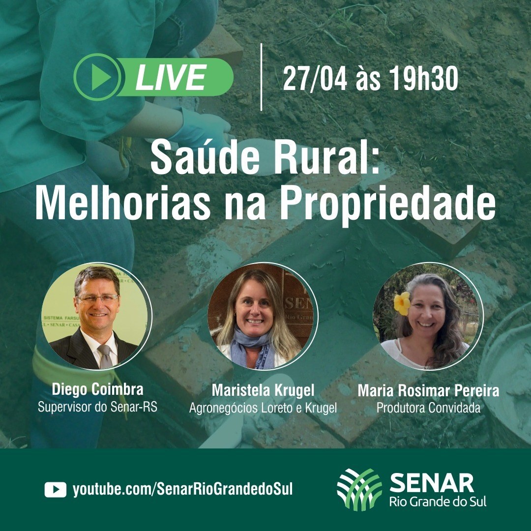 A live será transmitida a partir das 19h30min, no Canal do Senar-RS no YouTube.