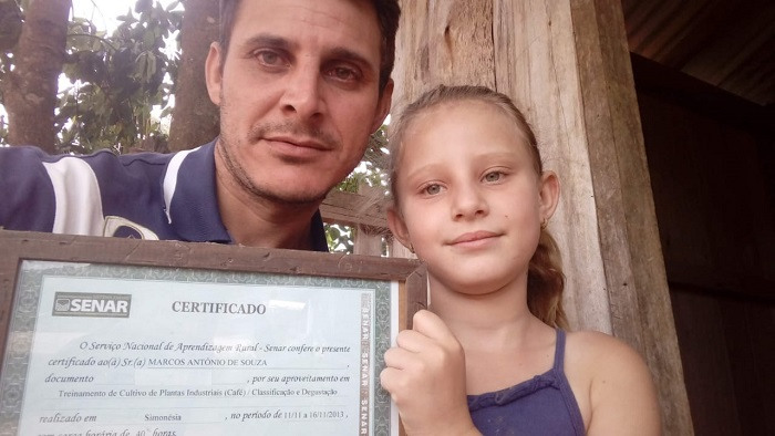 Quando soube desse pedido, o Senar Minas iniciou o acompanhamento técnico gratuito da propriedade, o que ocorreu há poucos meses. Após duas visitas técnicas, o cafeicultor e pai da pequena Sarah, Marcos Antônio Souza, já observa bons resultados na propriedade que tem área total de 13 hectares, dos quais oito são destinados para o cultivo do café.