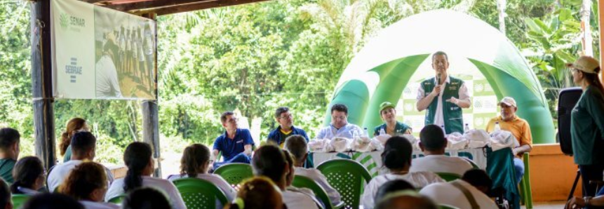 O presidente do Sistema Faea Senar Fundepec/AM, Muni Lourenço, a superintendente do Senar Amazonas, Jeyn's Alves e o presidente do Sindicato Rural de Parintins, Werner Gama, participaram nesse sábado (18) do encerramento do curso de cultivo de mandioca na Vila Amazônia, no município. O curso, assim como o encerramento foram realizados no Sítio São Francisco, de propriedade do produtor rural, Raimundo Gama.