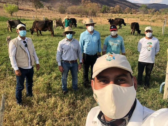 Gestor regional do FIP Paisagens Rurais na Bahia, Sunny Aaron Soares, com produtores assistidos pelo projeto