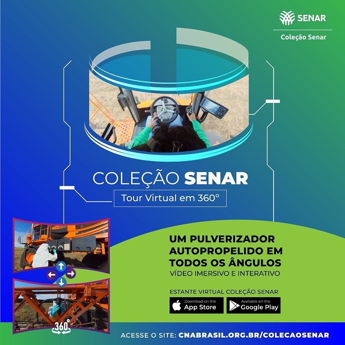 Brasília (15/05/2023) – O Serviço Nacional de Aprendizagem Rural (Senar) lançou mais um tour virtual em 360º, dessa vez para mostrar o funcionamento de uma máquina de pulverização autopropelido.
