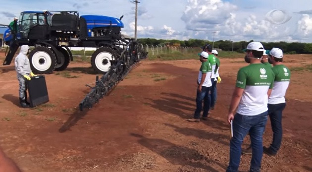 Outra capacitação ofertada pelo centro de treinamento é o curso de aplicação de defensivos agrícolas utilizando pulverizador autopropelido. O uso correto garante o controle de pragas e a redução nos custos de produção.
