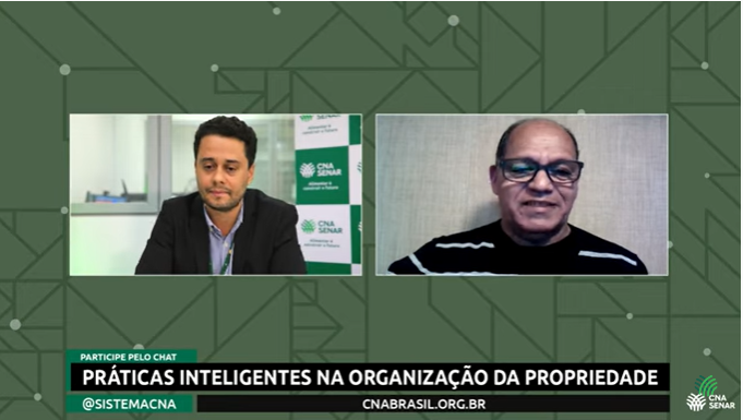 A live foi moderada pelo assessor técnico do Programa de Assistência Técnica e Gerencial (ATeG) do Senar, Cléber Sales Ramos, e contou com a participação do consultor e especialista em gestão e planejamento de propriedades rurais, Alex Fernandes de Almeida.