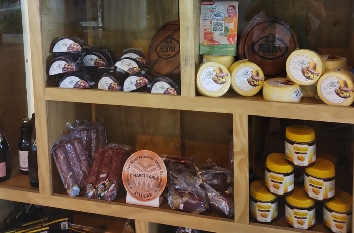 Cafés produzidos por mulheres de Minas Gerais e Paraná, mel de Santa Catarina, salames, nozes pecan e azeites do Rio Grande do Sul também estavam disponíveis para venda na feirinha. Além dos queijos do produtor Diego Perosa, de Iraceminha (SC), que foi um dos finalistas do Prêmio CNA Brasil Artesanal 2022 – Queijo. Os produtos da queijaria Perosa possuem Selo Arte.
