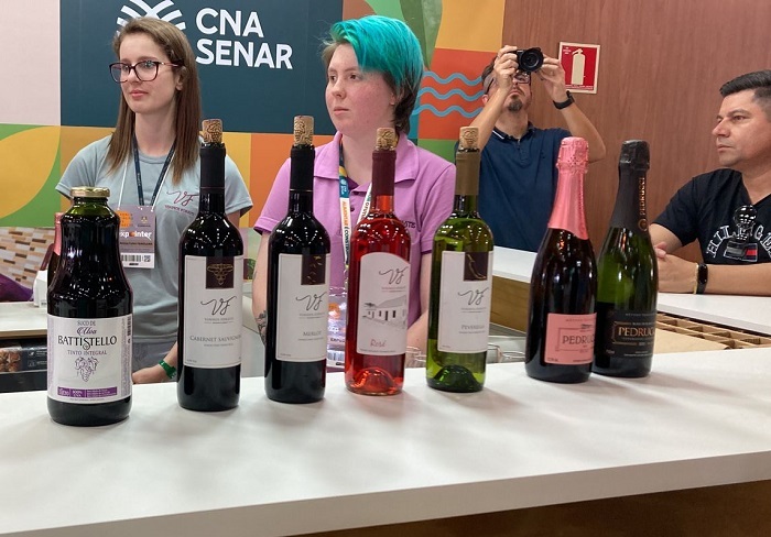 Vinhos, sucos e espumantes – Outra atração do estande do Sistema CNA/Senar na Expointer foi a degustação de vinhos tinto, branco, rose e espumantes, organizada pelo Sindicato Rural da Serra Gaúcha. As bebidas são produzidas por pequenos e médios produtores da região que iniciaram o atendimento da ATeG Agroindústria do Senar.