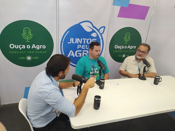 Durante o evento, também foi montado um estúdio do Podcast "Ouça o Agro", do Sistema CNA/Senar, para a realização de gravações de episódios especiais sobre o evento e o setor. O assessor técnico da CNA, Thiago Rodrigues, conversou com produtores, especialistas e representantes do setor aquícola.