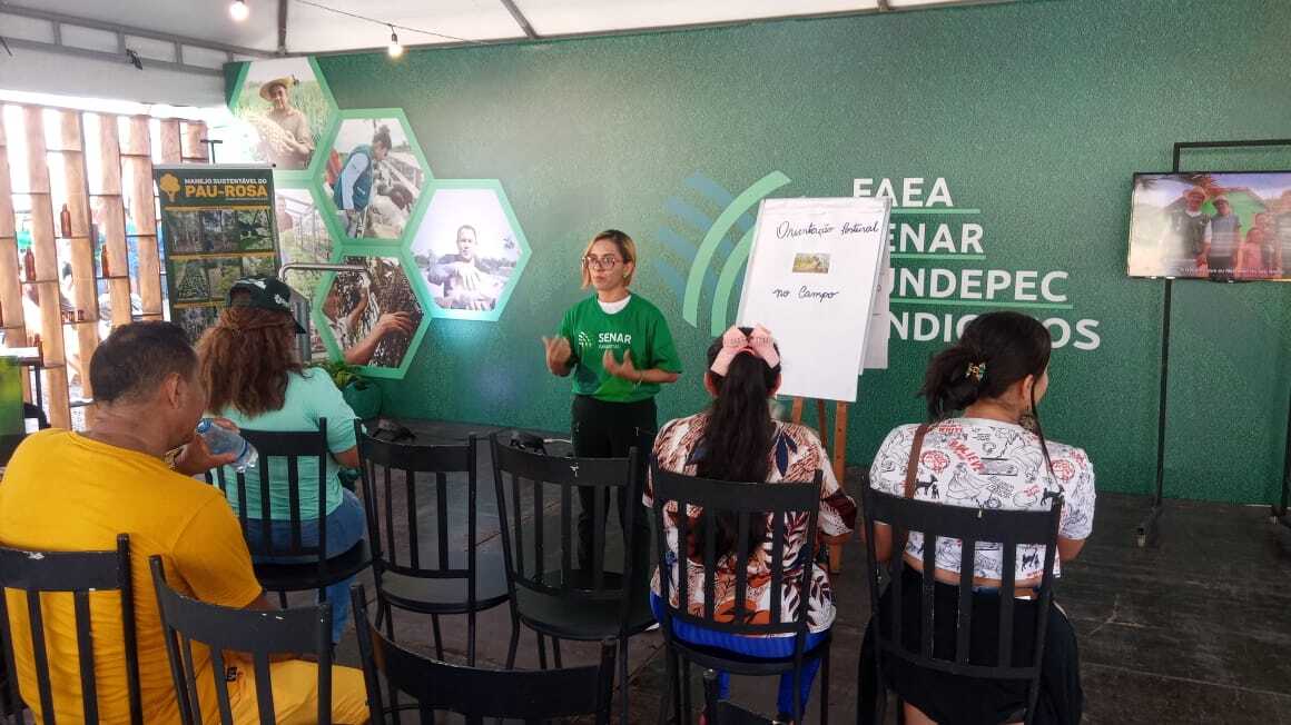 No estande foram distribuídas cartilhas do Senar Amazonas e materiais informativos do Sistema, comercializados produtos do agro diretamente por produtores rurais assistidos pelo programa de Assistência Técnica e Gerencial (ATeG) do Senar Amazonas, além de uma experiência com óculos realidade virtual - um tour 360º de vivência no campo.