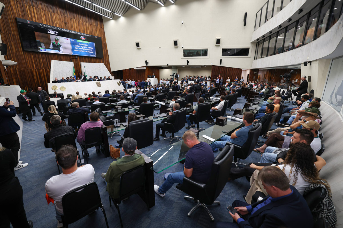 O Sistema FAEP mobilizou 700 fumicultores de 18 municípios do Paraná para participarem de uma Audiência Pública na Assembleia Legislativa do Paraná (Alep), em Curitiba, nesta terça-feira (15), sobre mudanças nas regras da classificação do tabaco. O objetivo foi discutir o Projeto de Lei 119/2023 (veja autores abaixo), que pretende obrigar a agroindústria a fazer a classificação da matéria-prima na propriedade, na hora da aquisição do produto.