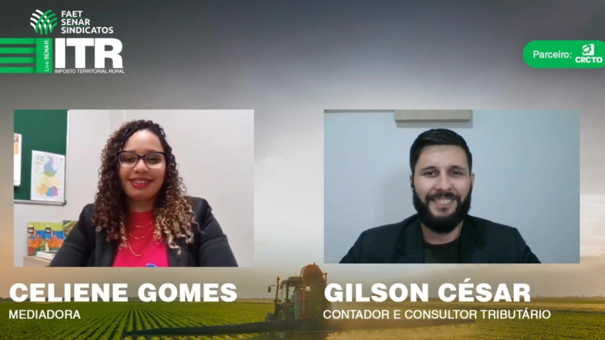 Nesta quinta-feira, 10/09, o Sistema FAET/SENAR promoveu uma live para debater aspectos importantes sobre o Imposto Territorial Rural (ITR) de 2020. A live transmitida pelo canal do Youtube do sistema, foi mediada pela Coordenadora de Arrecadação do SENAR/TO, Celiene Gomes, e contou com a participação do Contador e Consultor Tributário Gilson de Freitas. Mais de 80 participantes, incluindo produtores rurais, contadores e estudantes participaram do evento.