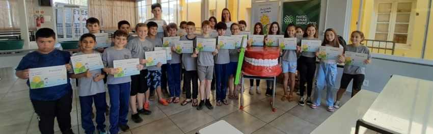 O Programa Sorrindo no Campo é voltado para crianças do 1º ao 5º ano, com o intuito promover e garantir saúde bucal. A programação contemplou oito horas de aprendizado sobre os principais cuidados com a higiene bucal. O supervisor regional do Senar/SC, Jeam Carlos Palavro, acompanhou as atividades.