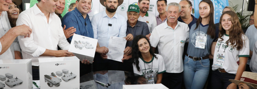 Paulo Ozaki, superintendente do AgriHub, também marcou presença no encerramento da Semana Tecnológica na Escola Ranchão. Ele demonstrou aos alunos como a implementação de tecnologias avançadas e as inovações no campo podem aumentar a produtividade e promover práticas sustentáveis que transformam a vida dos produtores rurais.