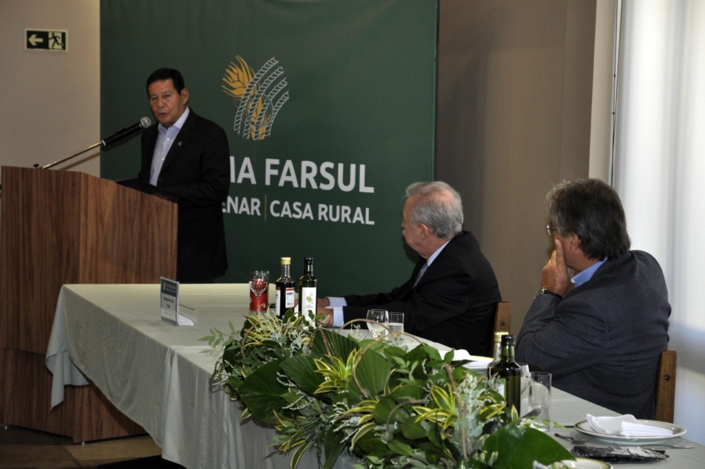 O vice-presidente da República, General Hamilton Mourão, esteve nesta quinta-feira (12/5) na sede da Farsul. Ele falou para a diretoria da Farsul, dirigentes sindicais e convidados especiais. Mourão apresentou uma palestra onde falou sobre o atual momento nacional e os principais desafios para o desenvolvimento do país.
