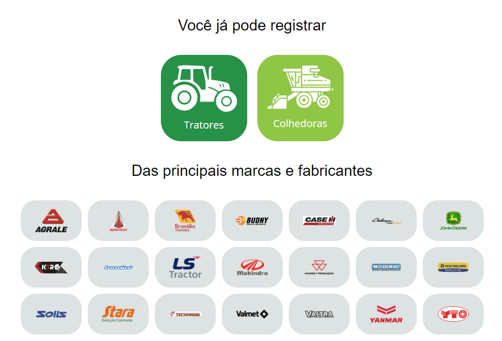 Por meio do app, é possível fazer o registro obrigatório para máquinas agrícolas que transitam em via pública. Tudo de forma gratuita, sem impostos ou taxas anuais. Com o registro, é possível ter todo o histórico e procedência da máquina. Assim, é possível garantir a origem lícita da máquina e tornar as operações de compra e venda mais seguras.