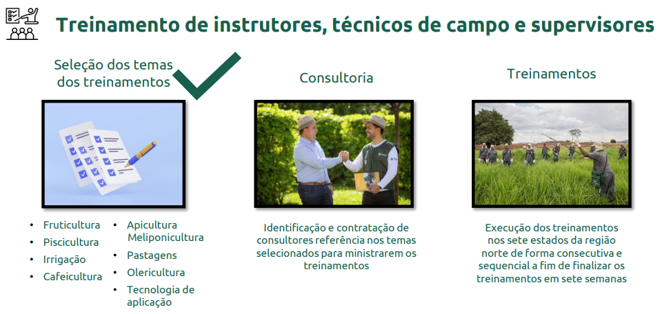 🟢 Manter a equipe técnica no campo atualizada e com os mesmos níveis de conhecimento para dar condições de suporte e difusão das tecnologias aos produtores, tanto nas capacitações quanto na Assistência Técnica e Gerencial.