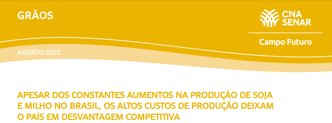 Apesar dos constantes aumentos na produção de soja e milho no Brasil, os altos custos de produção deixam o país em desvantagem competitiva