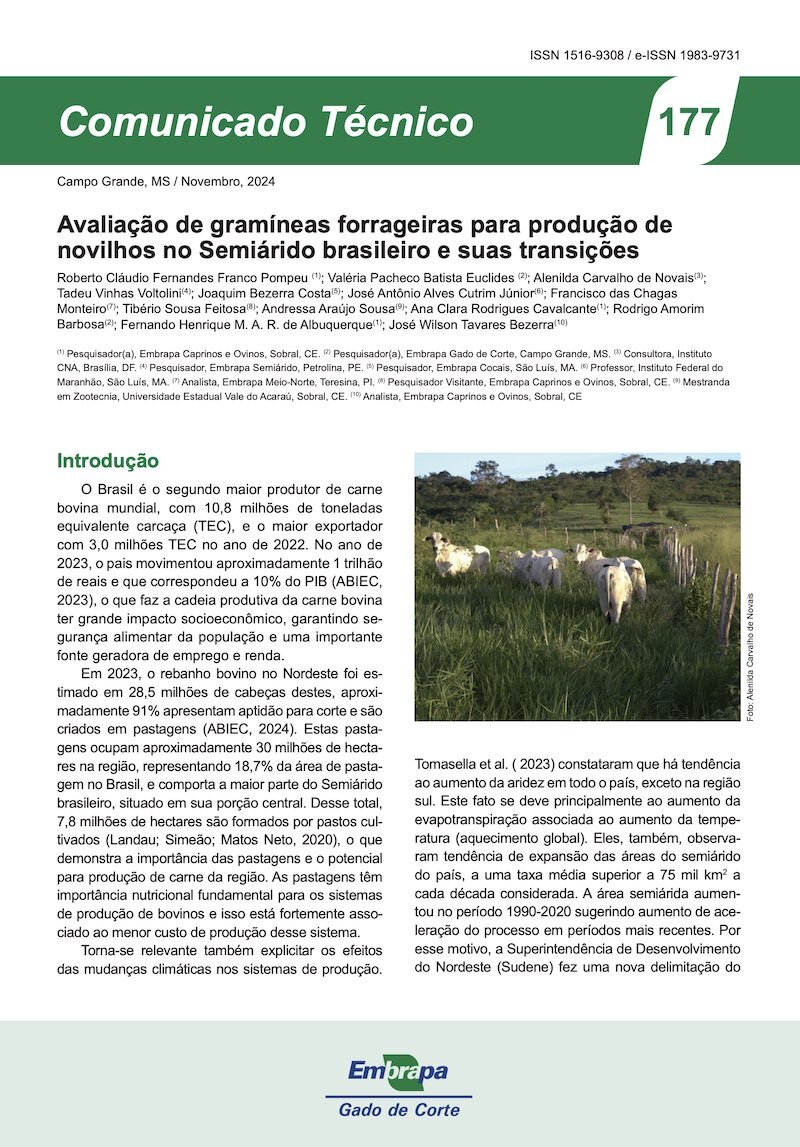Avaliação de gramíneas forrageiras para produção de novilhos no Semiárido brasileiro e suas transições