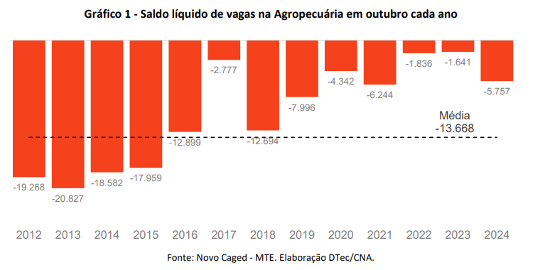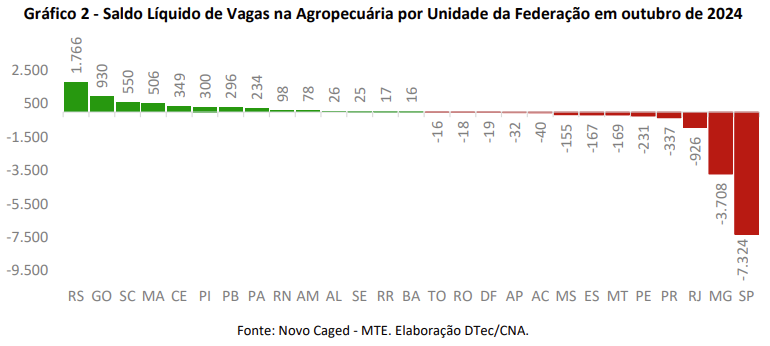 As atividades agropecuárias que mais contribuíram com a criação de novas vagas de trabalho em outubro de 2024 foram: