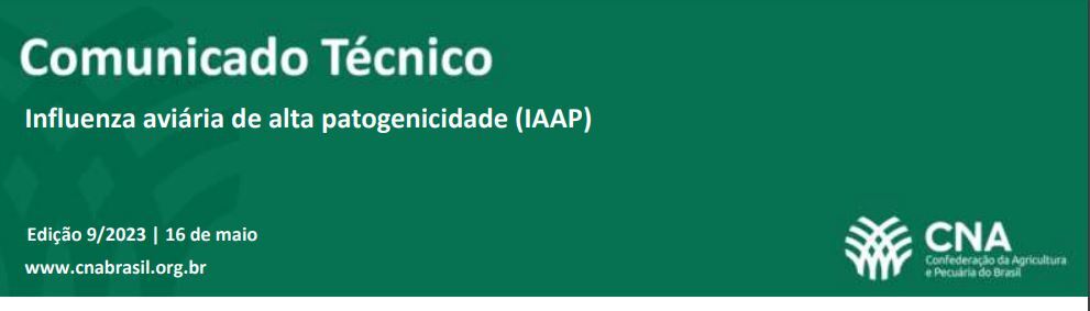 Foram confirmados no Brasil, no dia 15 de maio, os três primeiros casos de Influenza Aviária de Alta Patogenicidade (IAAP) de subtipo H5N1 em aves silvestres, das espécies Thalasseus acuflavidus, cujo nome popular é Trinta-réis-de-bando e Sula leucogaster (atobá-pardo).